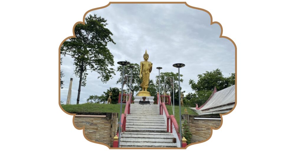 องค์พระประดิษฐานอยู่ในบริเวณวัดที่สามารถมองเห็นได้ชัด เสมือนเป็นพระประธานกลางแจ้งเพื่อให้ชาวบ้านและผู้แสวงบุญได้สักการะโดยสะดวก พระปางลีลานี้ไม่เพียงแต่เป็นศิลปะที่งดงาม แต่ยังเป็นสัญลักษณ์แห่งการโปรดสัตว์ การเผยแผ่พระธรรม และการก้าวเดินไปข้างหน้าของพระพุทธศาสนาในชุมชน